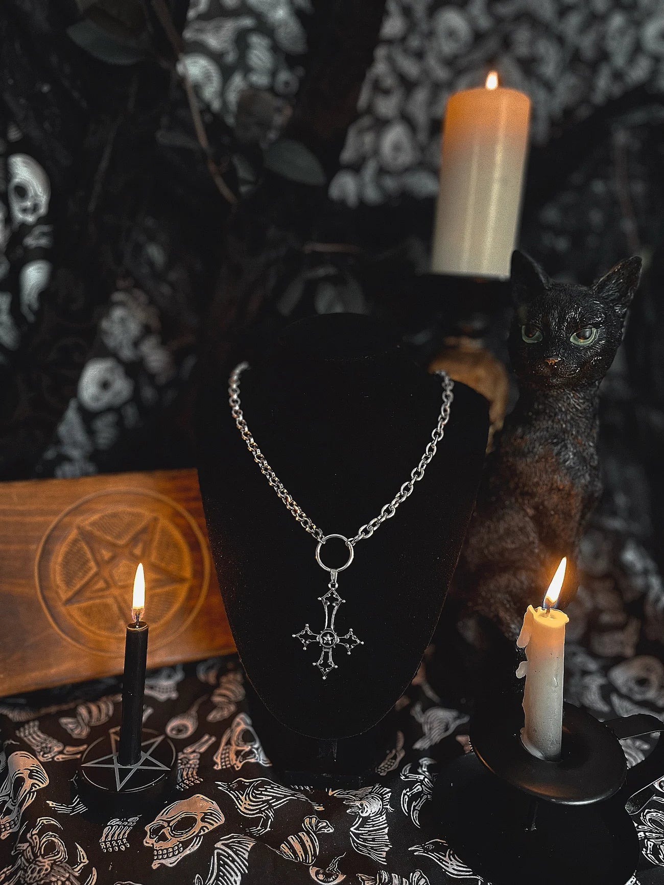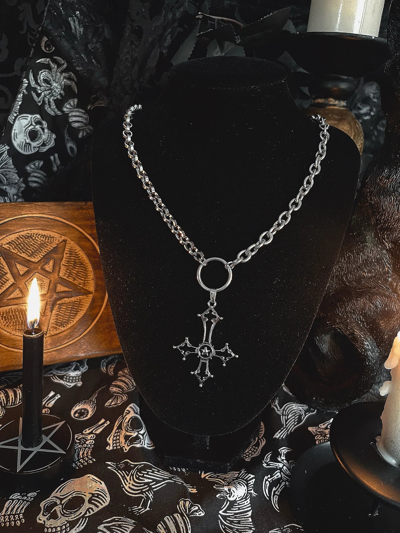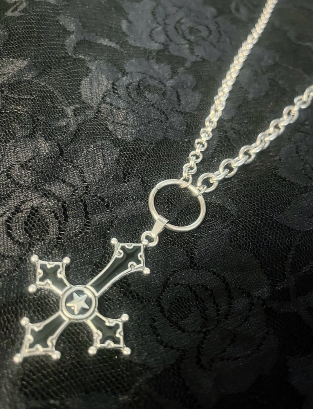Make a bold statement with this gothic upside-down cross necklace. The 18-inch stainless steel chain is durable and features unique variations, as seen in the third picture. The mixed metal pendant showcases an eye-catching upside-down cross, symbolizing rebellion and individuality. Perfect for layering or wearing alone, this necklace embodies gothic elegance and defiance.