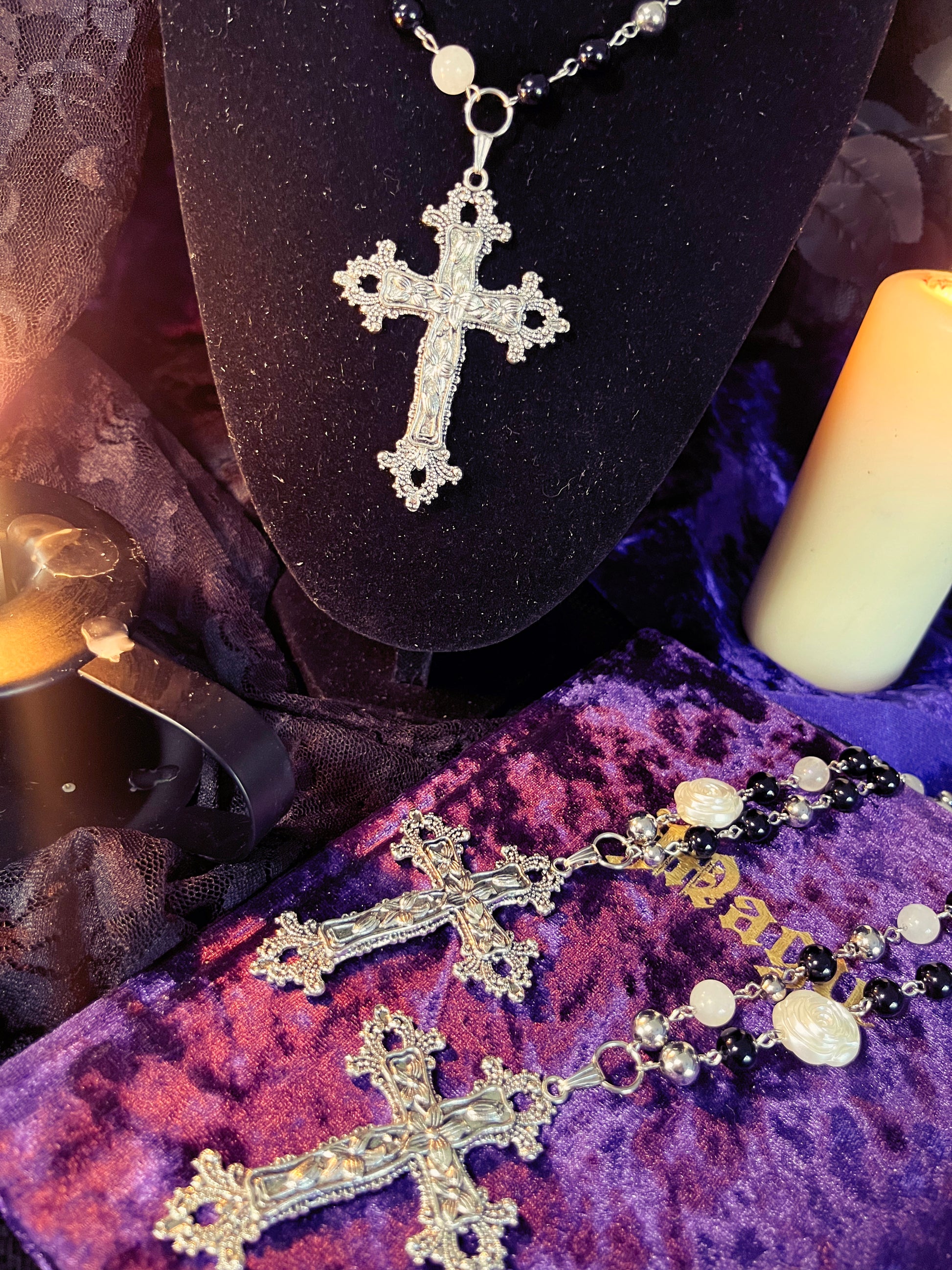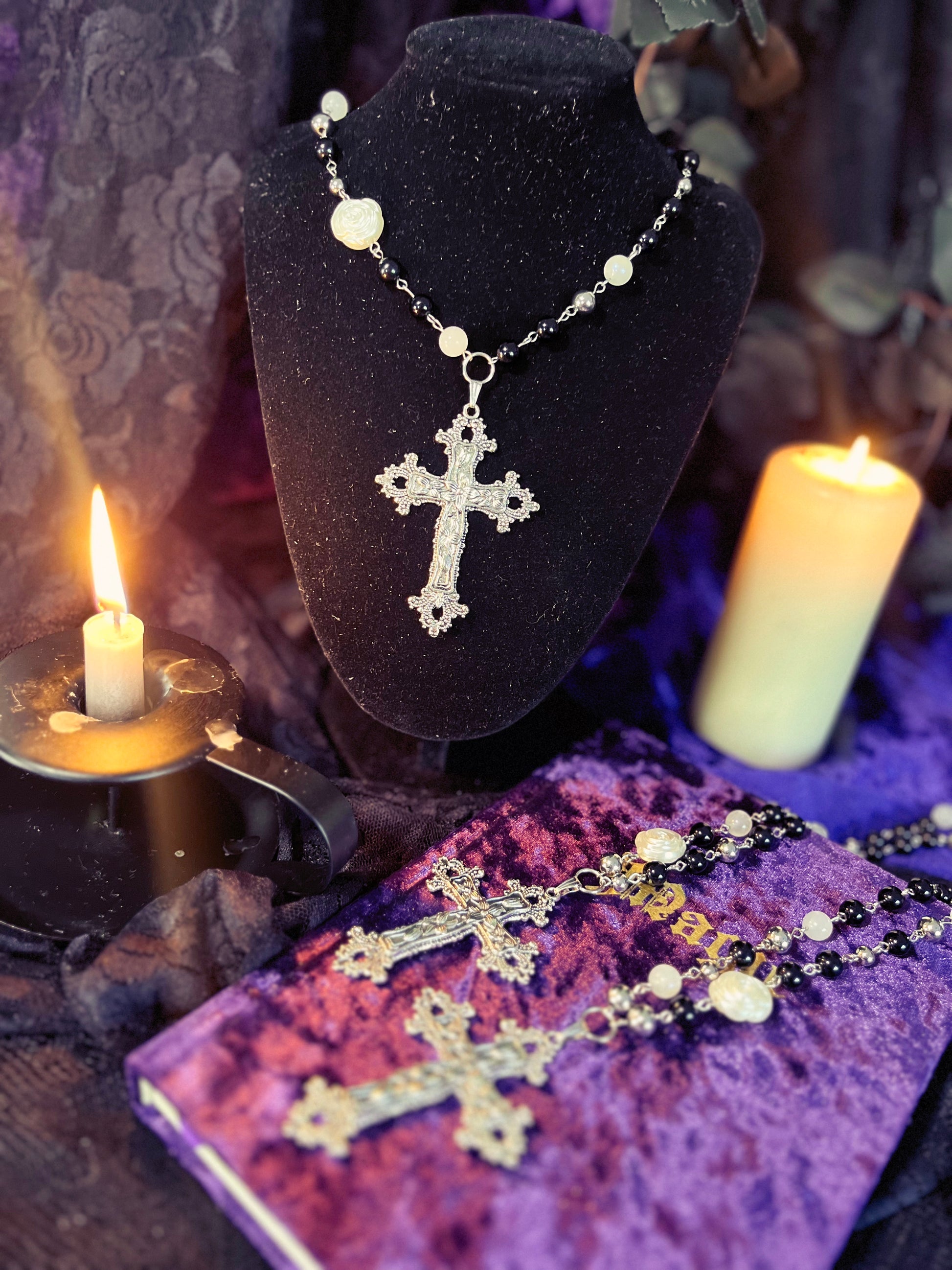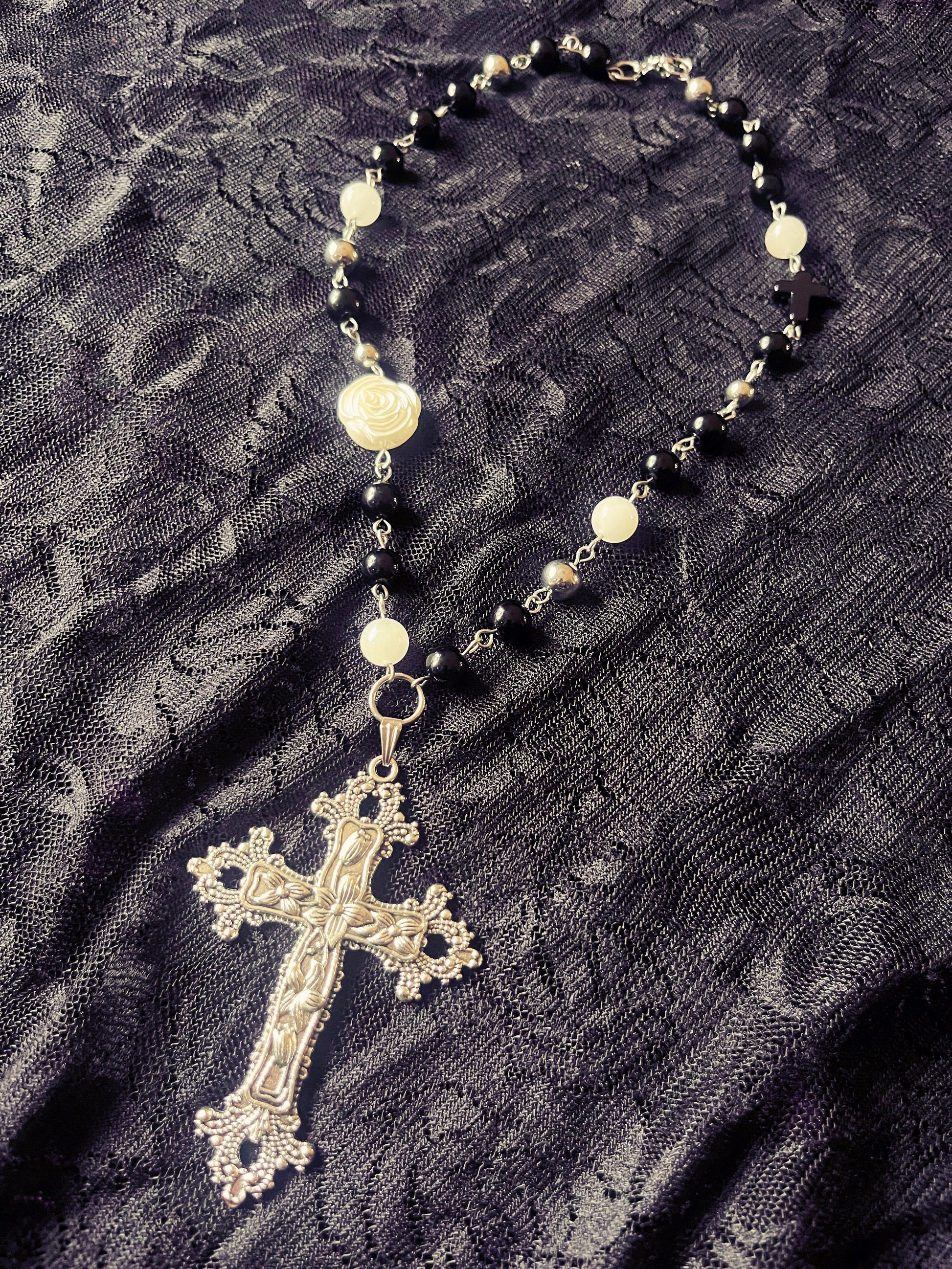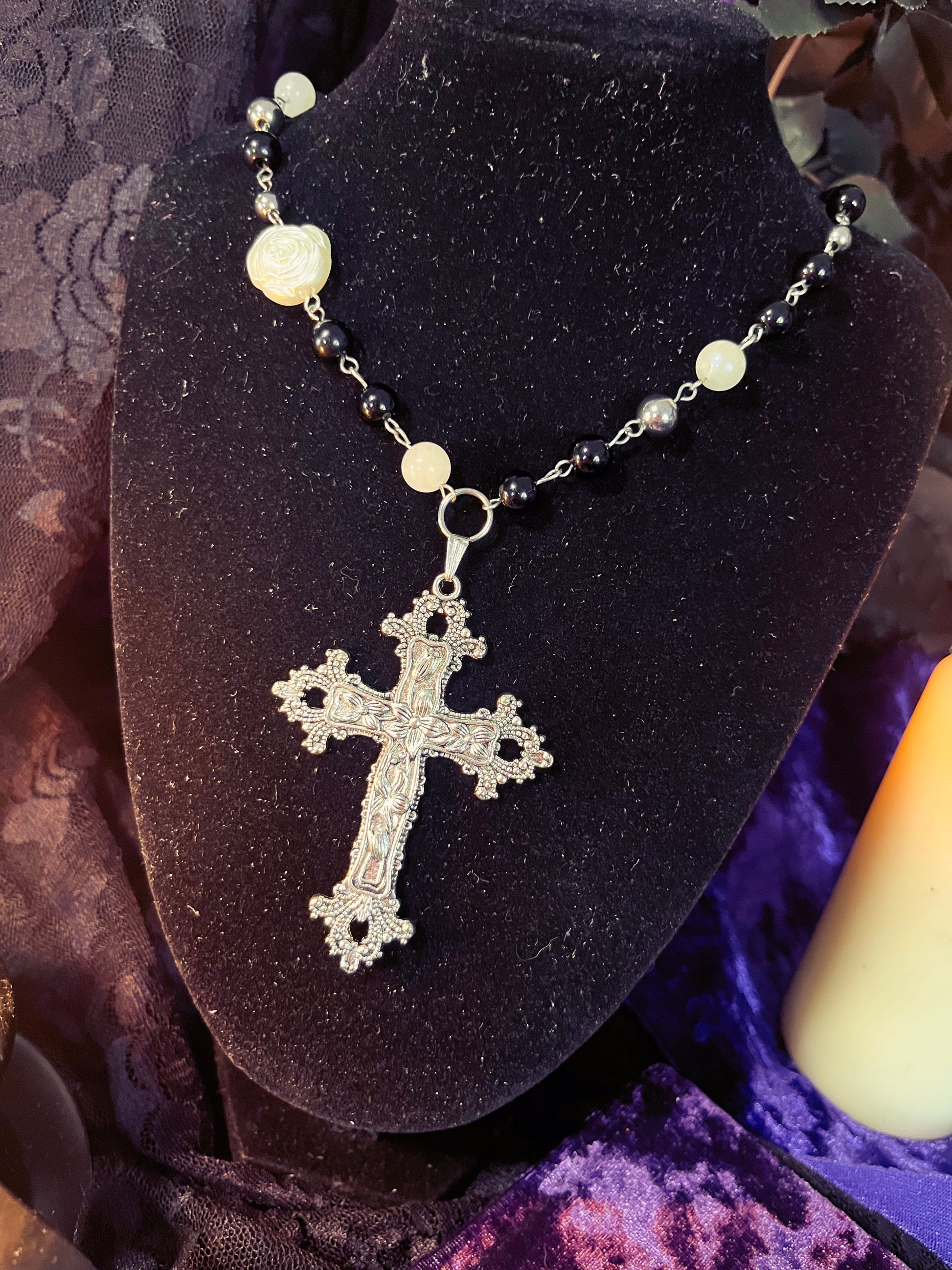A mix of moonstone, obsidian, resin & stainless steel beads.