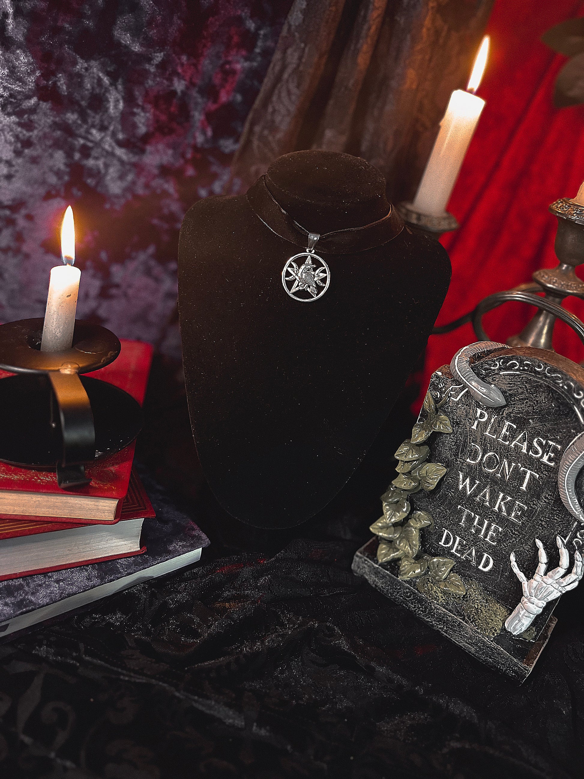 Make a bold statement with this 12-inch velvet choker, featuring a 3-inch extender for the perfect fit. The rich, soft velvet is paired with a striking mixed metal pendant, creating a beautiful contrast of textures and tones. A perfect accessory for those who love to combine elegance with an edgy, modern twist. 🖤