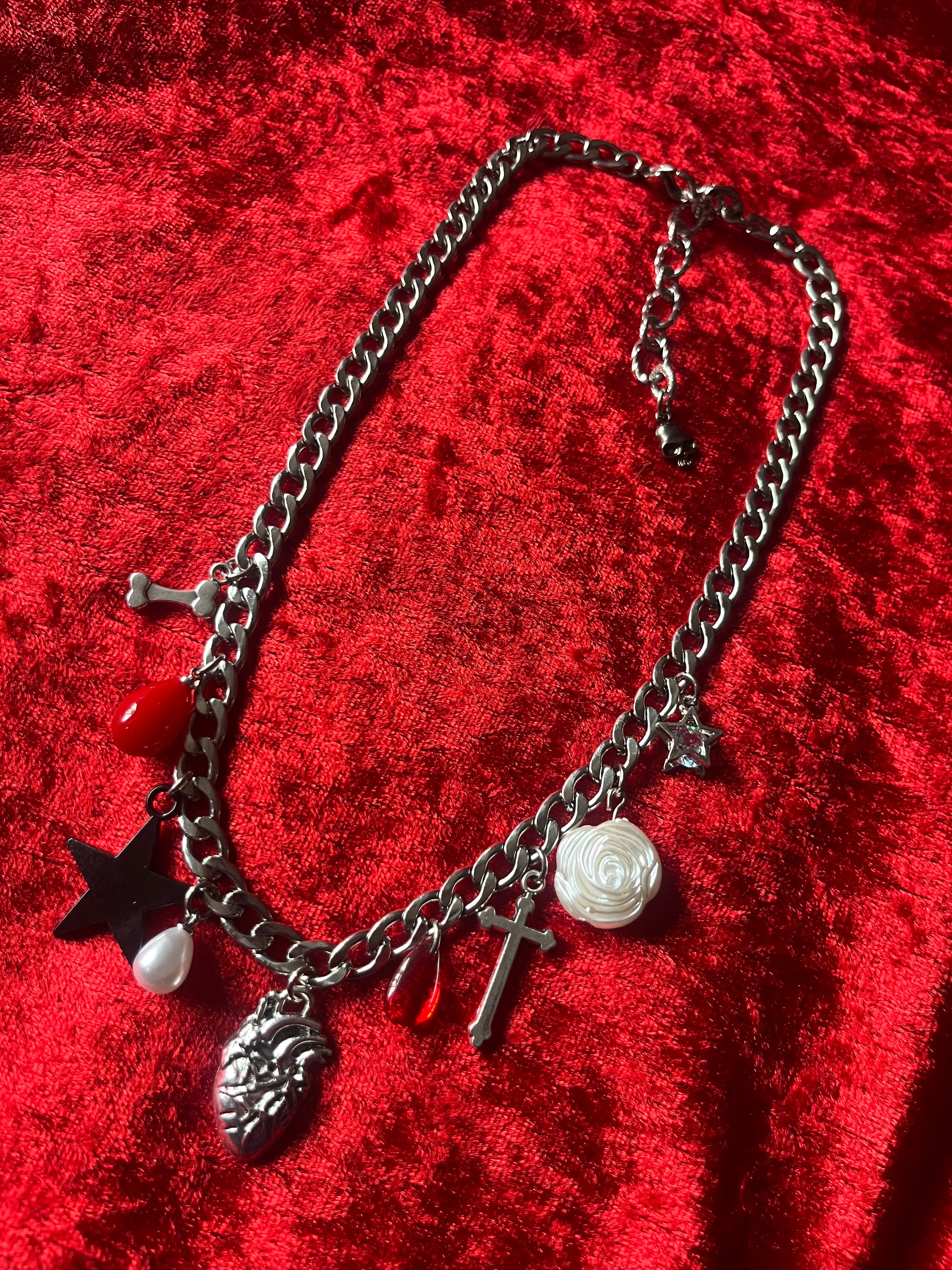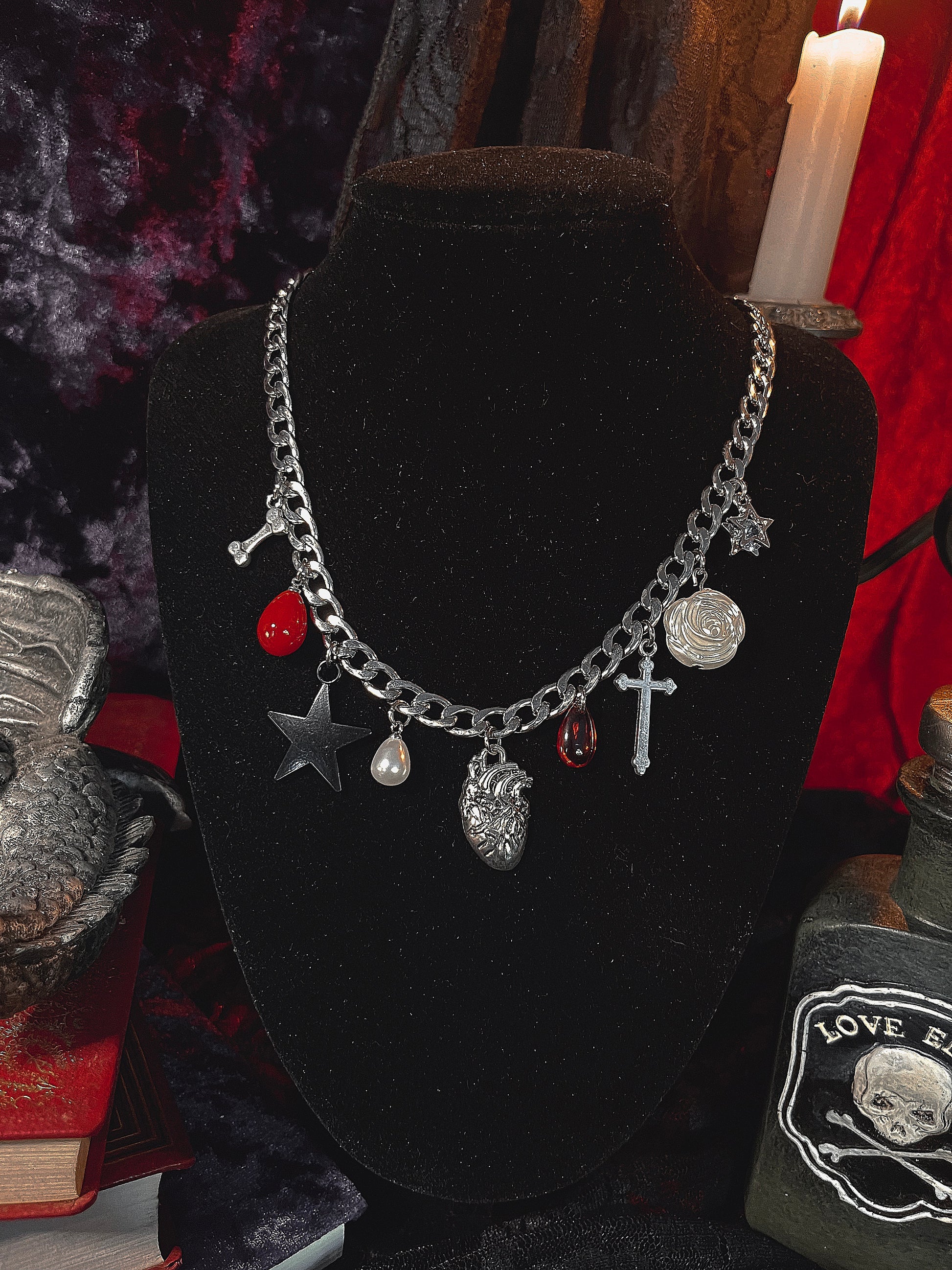 Add a touch of bold sophistication with this 17-inch stainless steel chain, complete with a 2-inch extender for the perfect fit. The necklace features a mix of metal and bead pendants, creating a striking fusion of textures and colors that capture both elegance and edge. A versatile piece that elevates any outfit with its unique, modern charm. 🖤