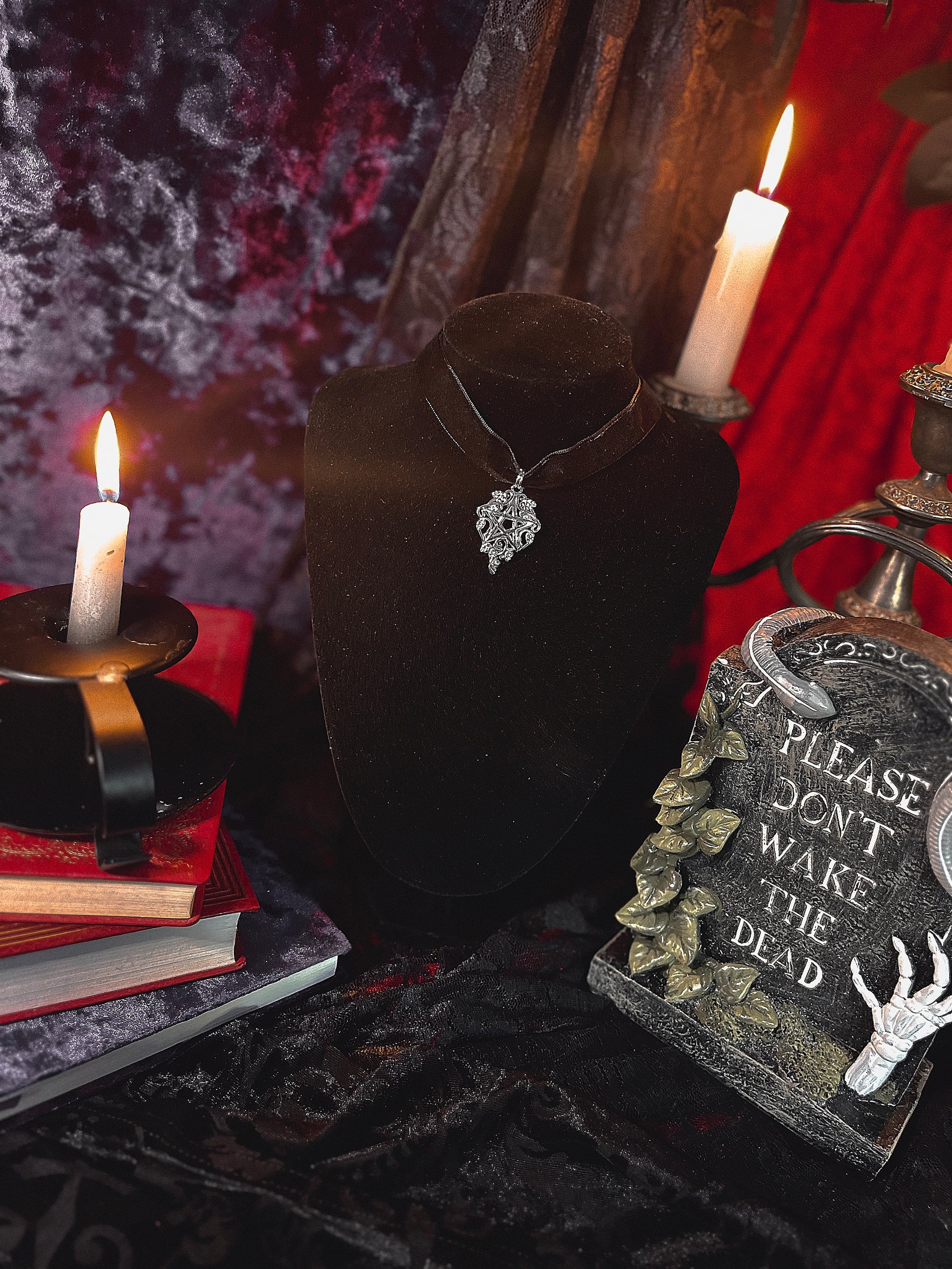 Embrace gothic sophistication with this 12-inch velvet choker, complete with a 3-inch extender for a customizable fit. The soft, luxurious velvet pairs perfectly with the sleek stainless steel pendant, creating a striking contrast of delicate and bold. A timeless piece for those who love to add an edgy touch to their elegance. 🖤